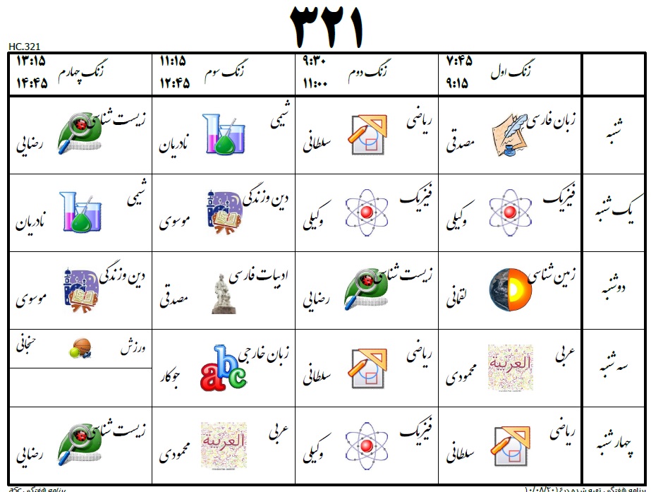 برنامه هفتگی کلاس 321